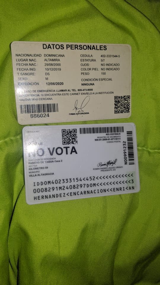 Jargelis Pérez Mercedez expresó que vendió un televisor plasma de 50 pulgadas a través de la red de Facebook a un miembro del ejército identificado como Enrique Arturo Hernández Encarnación, por la suma de 25 mil pesos, los cuales les fueron depositados por una cuenta del BHD, pero que nunca cayeron en su cuenta. Indico que el supuesto militar utiliza el número de teléfono 849-886-2743 y un carnet del Ejército número 886024 y la cedula 402-333-1544-5, el televisor le fue enviado por un taxista de Uber a la zona de Sabana Perdida.